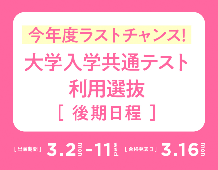 大学入学共通テスト利用選抜後期日程の出願開始しました